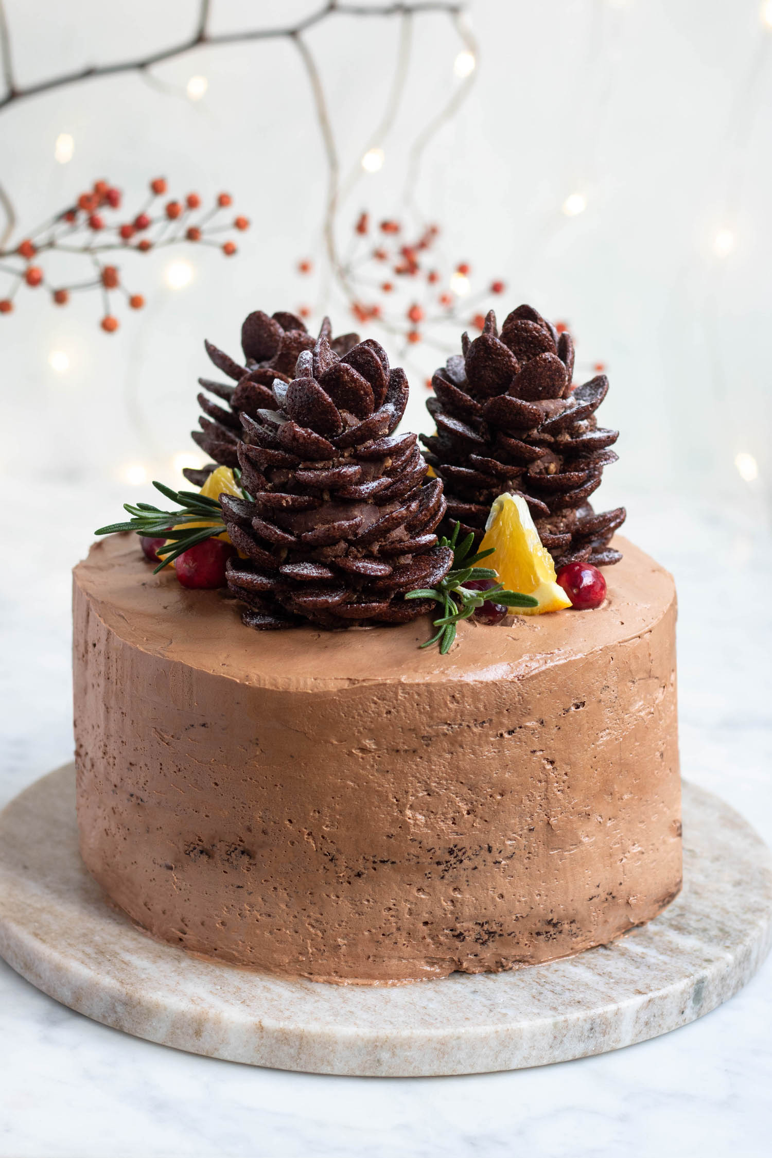 Hoe leuk zijn deze eetbare dennenappeltjes? Ze zijn heel eenvoudig te maken met slechts drie ingrediënten. Ze veranderen een standaard chocoladetaart direct in een sfeervol herfst- of wintertafereeltje. Serveer ze op een smeuïge chocoladetaart met Zwitserse meringue botercrème en maak het extra feestelijk met wat rozemarijn, sinaasappel en cranberry’s ter decoratie.