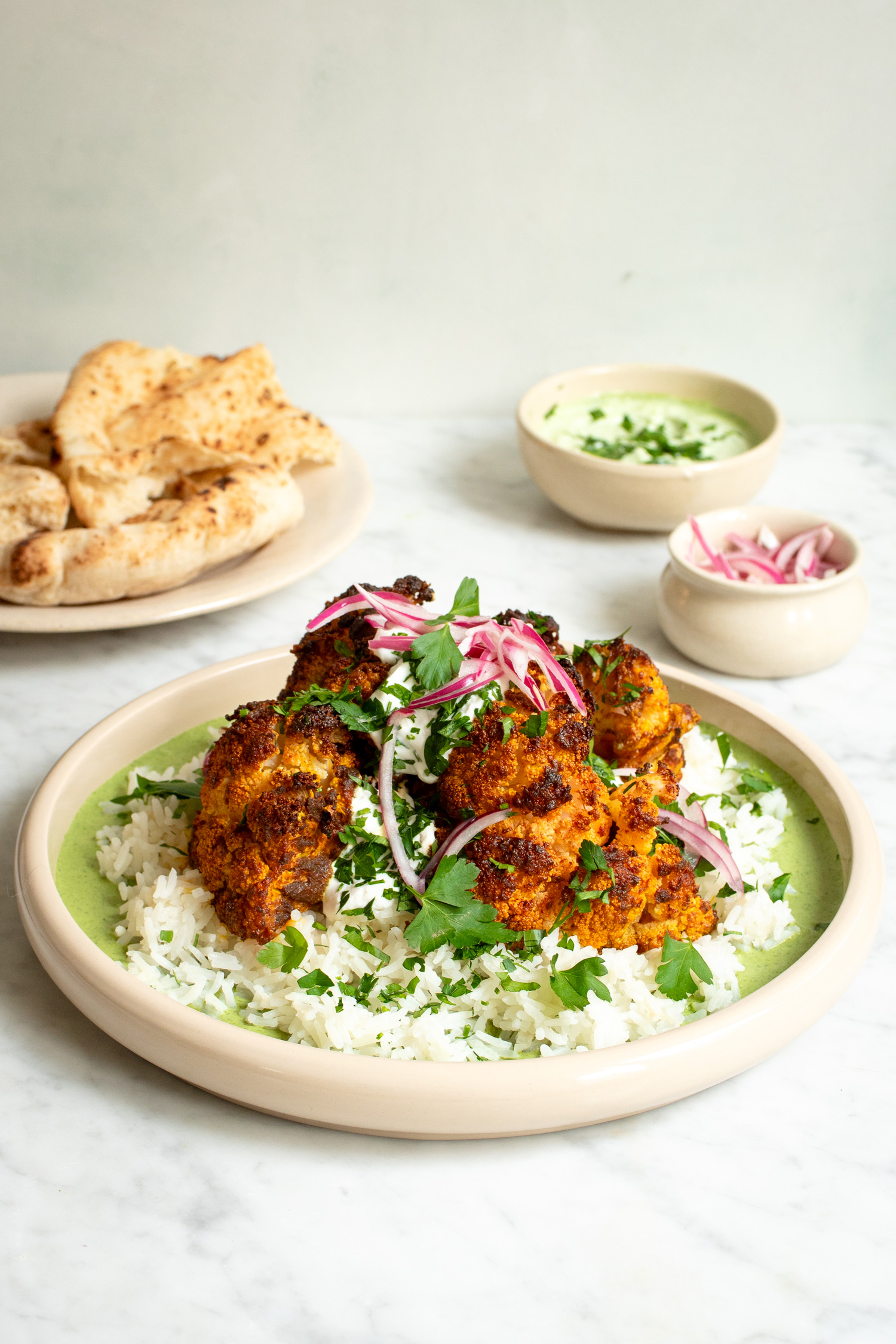 Tandoori bloemkool met groene yoghurtsaus